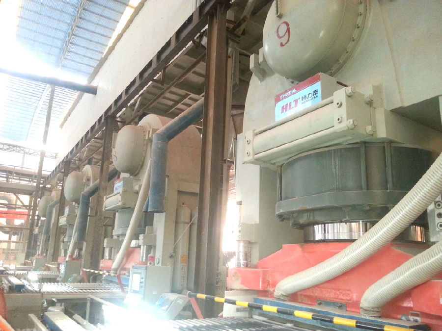 In this project, LT Family provides the HLT Press, DLT Kiln and ZLT Raw material preparation department. YP4009 Press is featured with super Fatigue resistance and loading stability. The biggest pressure is 40000kN, the column distance is 1750mm, and idle cycle can reach to 20strokes/min. In frame, it is combined by strengthen iron wire, meanwhile, equipped with the latest outlay piston structure. According to the report from technician, the tiles are 100% qualified, ‘0’ breakage rate!