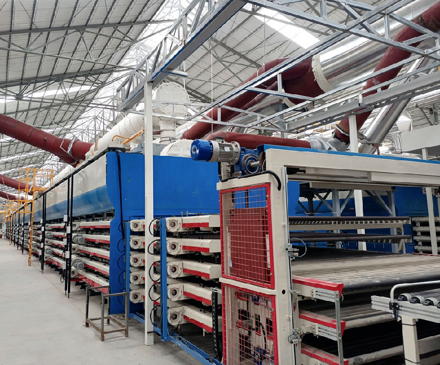 The main product is 1200*3600*12mm sintered slab, while also available with 750*1500mm, 800*2600mm, 1600*3200mm sizes of 9-20mm thickness. The daily output is up to 11,000m2 for the whole line.