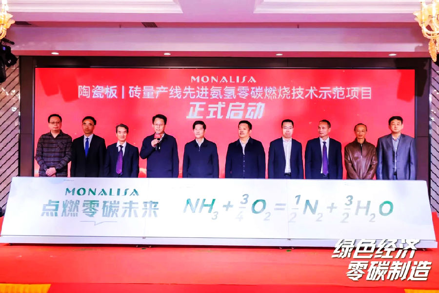 On December 28th, the "Advanced Ammonia-Hydrogen Zero-Carbon Combustion Technology Demonstration Project for Ceramic Slab and Tile Mass Production Line" (hereinafter referred to as the "Ammonia Hydrogen Zero Carbon Combustion Project") was officially launched at the headquarters of Monalisa Group. This is a new path explored by Monalisa in collaboration with Foshan Xianhu Laboratory, DLT, Oceano, Guangdong Anqing Technology and other companies to build ceramic zero carbon manufacturing and green development, which marks a major step forward for the industrial application of carbon-neutral technology in China's ceramics industry, and is of great significance for accelerating the green and low-carbon transformation and development of the industry.