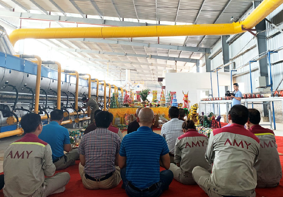 上午八點十五分,在越南亞美舉行了第4期項目的點火儀式。點火儀式由德高望重的高僧主持,按當(dāng)?shù)貍鹘y(tǒng)風(fēng)俗有序進(jìn)行。隨著第一把火的熊熊燃燒,在場人員懷著一顆虔誠的心,共同祝福亞美就像這窯火一樣,紅紅火火、越燒越旺,同時也標(biāo)志亞美產(chǎn)能將得到大幅度的提升,可進(jìn)一步增強(qiáng)產(chǎn)品的市場競爭力。