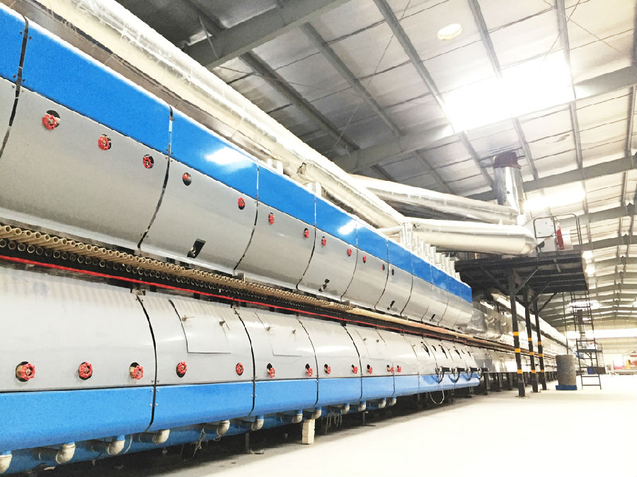 該項(xiàng)目配備恒力泰板材壓機(jī)之王YP16800一臺(tái)及明星機(jī)型YP7809一臺(tái)、EL系列陶瓷大板專用5層干燥窯和DRK系列窄體大板專用窯及釉線等其他輔機(jī)設(shè)備,主要生產(chǎn)1200mmx2400mm、800mmx1600mm、900mmx1800mm等大型板材。