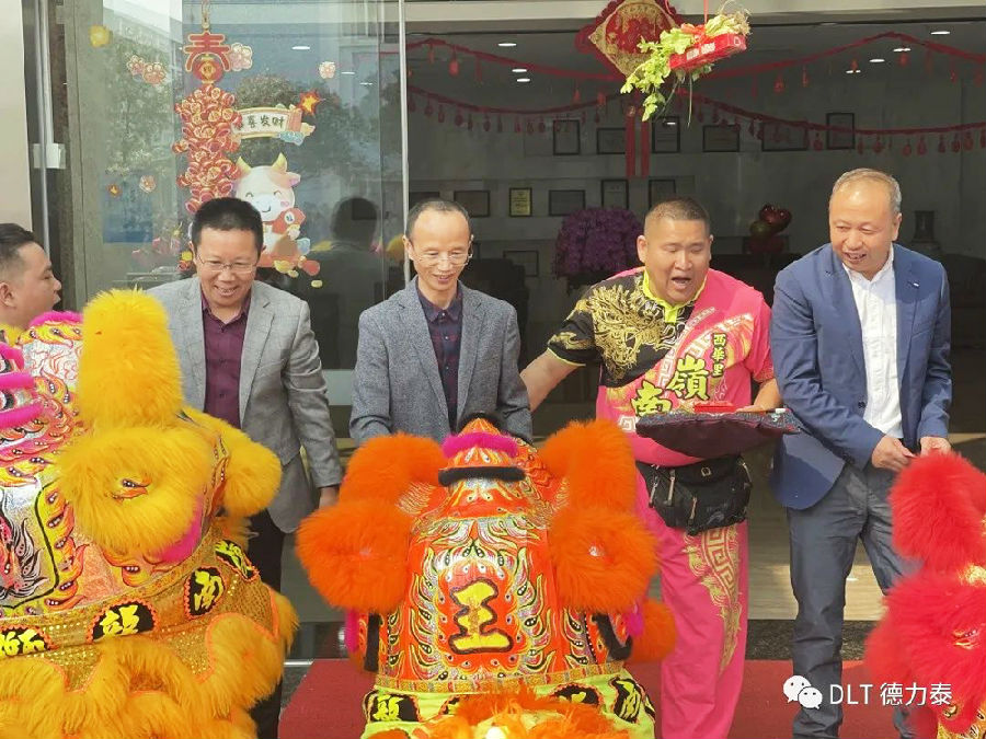 緊接著舞獅隊伍逐一為各部門和車間送去新年祝福:祝大家萬事勝意、身體健康、步步高升、牛年大吉!
