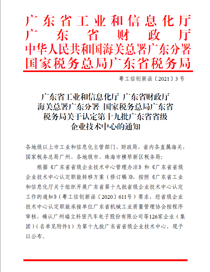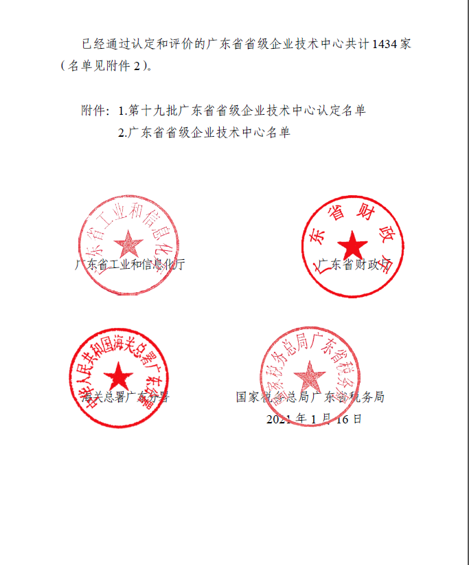 根據(jù)《廣東省省級企業(yè)技術中心管理辦法》和《廣東省省級企業(yè)技術中心認定職能轉移方案(修訂稿)》,按照《廣東省工業(yè)和信息化廳關于組織開展廣東省第十九批省級企業(yè)技術中心認定工作的通知》(粵工信創(chuàng)新函〔2020〕611號)要求,經(jīng)省級企業(yè)技術中心認定職能承接單位廣東省機械工業(yè)質量管理協(xié)會按程序審核,確認佛山市德力泰科技有限公司等單位在研發(fā)與試驗發(fā)展人員、試驗場地、研發(fā)設備、科技活動經(jīng)費支出、產(chǎn)學研合作、創(chuàng)新成果、企業(yè)效益等方面符合條件,被認定為第十九批廣東省省級企業(yè)技術中心,并于2021年1月16日公布。