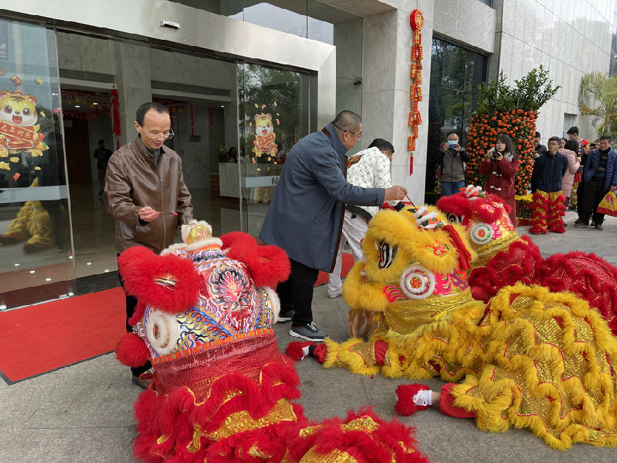 鞭炮陣陣、鑼鼓喧天,力泰品牌在醒獅雄舞中迎來(lái)了開工大喜日子。員工臉帶笑容,信心滿滿,人氣興旺,底氣十足,現(xiàn)場(chǎng)一片歡樂祥和氣氛,煥發(fā)出勃勃生機(jī)。新年開新篇,處處春意鬧。由科達(dá)制造董事長(zhǎng)邊程、科達(dá)制造總經(jīng)理/恒力泰總經(jīng)理?xiàng)?/span>學(xué)先、恒力泰副總經(jīng)理馮瑞陽(yáng)共同為醒獅“點(diǎn)睛”,迎春接福。寓意瑞虎運(yùn)財(cái)、如虎添“億”!