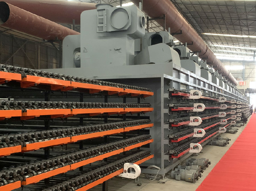 該巖板生產線選用了當前最具通用價值的恒力泰YP6209、YP10090各一臺自動液壓機,德力泰工業“4.0能效標桿數智時代”巖板燒成窯和高效節能五層自循環干燥器、釉線干燥器等設備。
