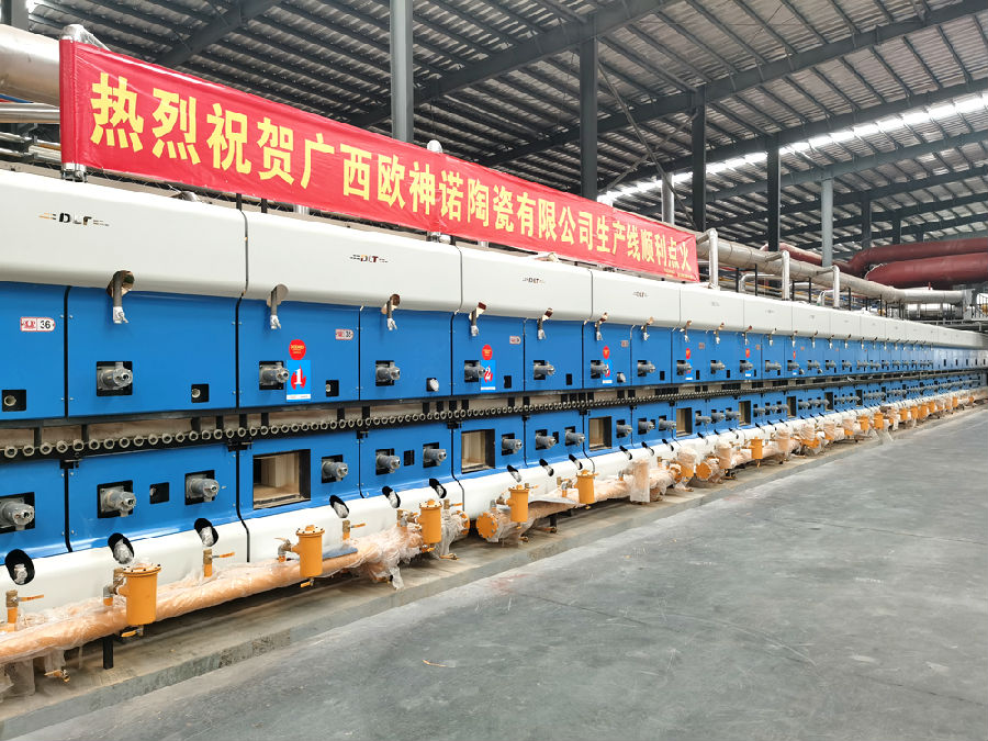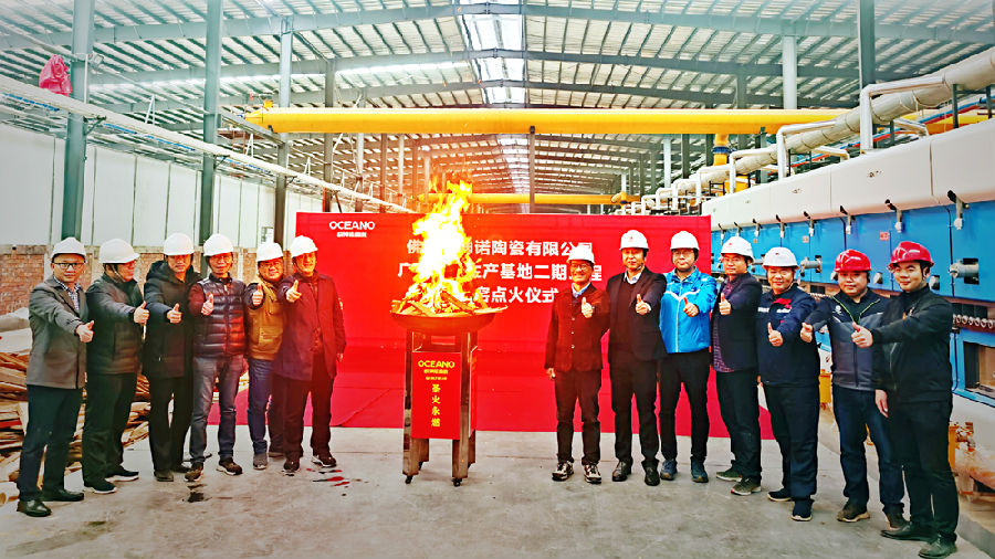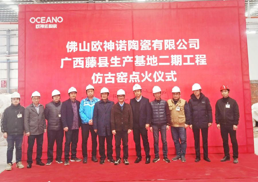 2020年12月24日,上午吉時11點18分,一把熊熊圣火開啟了歐神諾廣西藤縣基地二期工程高端全拋釉新生產(chǎn)線點火投產(chǎn)的新征程。