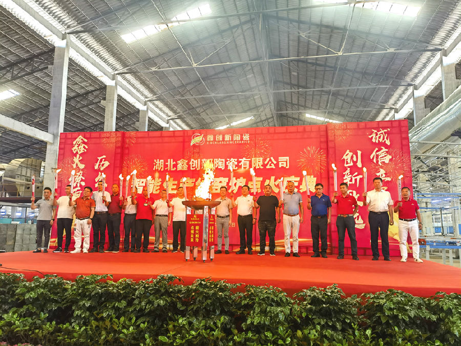 7月16日,湖北鑫創新陶瓷項目現場香燭紅火,人聲鼎沸,伴著陣陣祝福聲和喝彩聲,大產量全拋釉燒成窯標桿之作在眾多嘉賓的見證下震撼點火!項目投產后,可日產高端全拋釉產品75000m2,將高效助力鑫創新陶瓷朝著產品專業化、裝備智能化方向大步邁進,也為力泰陶機投運的大產量、低能耗整線項目再添新彩。
