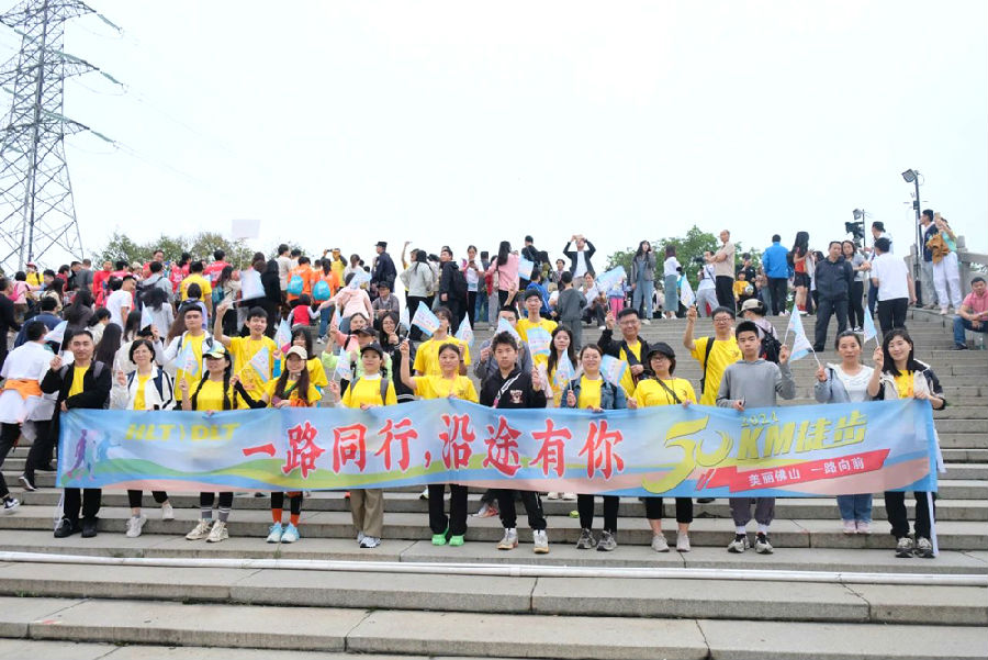 50公里的距離,車程僅需1-2個小時,而徒步則需要一天。從早晨到傍晚,力泰陶機的員工一直保持昂揚斗志,相互鼓勵、相互打氣,在徒步中,體驗三水“舊”與“新”的歷史文化與城市發展的融合之美,感受生機勃勃的春天氣息。