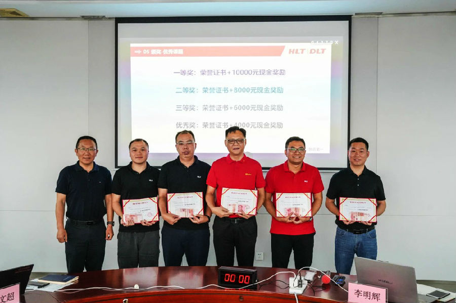 接著,在各領導的評比中角逐出以下精益改善課題獎項:榮獲重大精益改善課題一等獎的是《德力泰科技數字化智能車間打造》,該課題在數字化智能化方面取得了顯著成果;二等獎為《YPL2000B1周期縮短精益改善》,有效縮短了生產周期,提升了生產效率;三等獎則是《關鍵設備OEE提升改善》,課題針對關鍵設備進行了優化,顯著提高了設備綜合效率。此外,《技術二部設計計劃達成率提升》和《擠壓筒熱入工序廠內自制改善》榮獲重大精益改善課題優秀獎,分別在設計計劃達成和工序自制方面取得了優異表現。隨后,秦總為這些獲獎課題頒發獎項,并向所有參與精益改善工作的員工表示衷心的感謝和崇高的敬意。